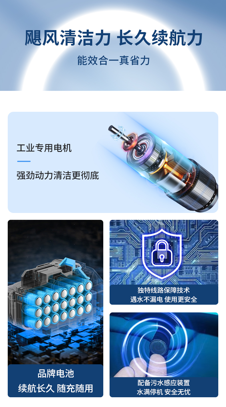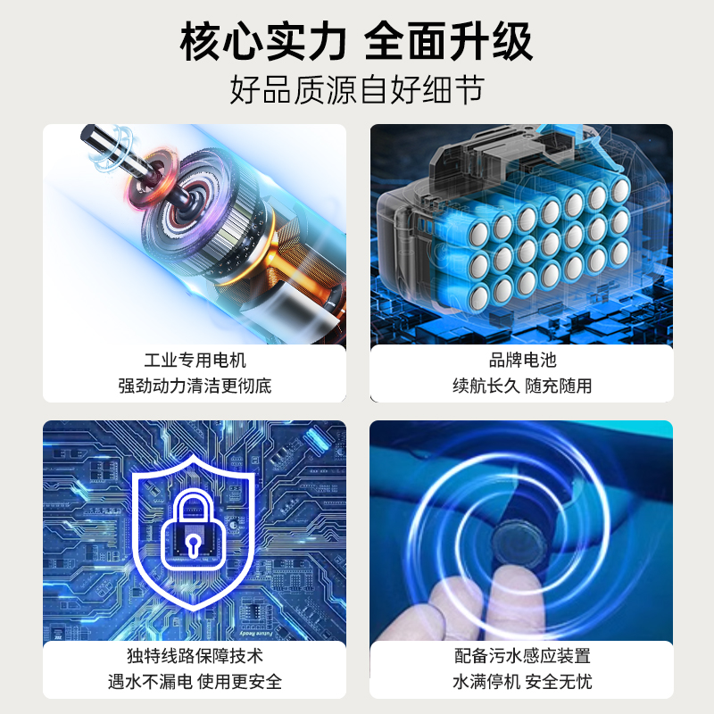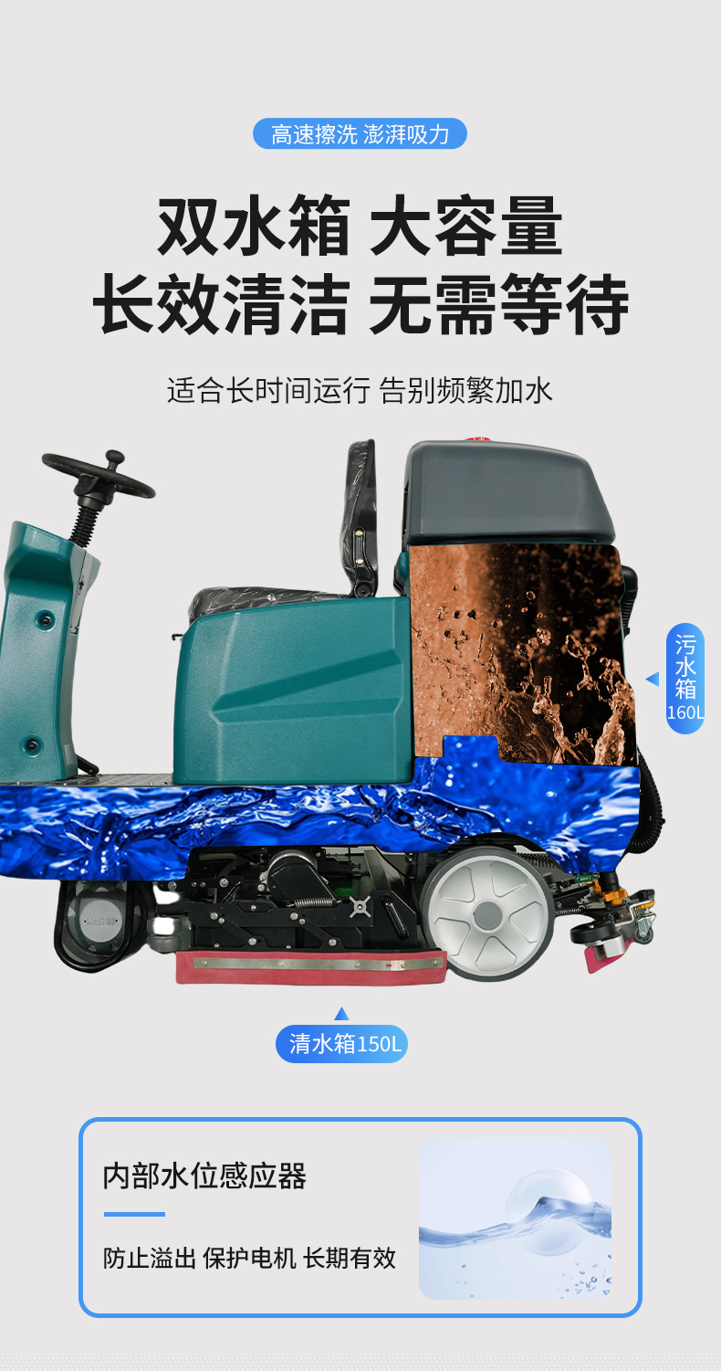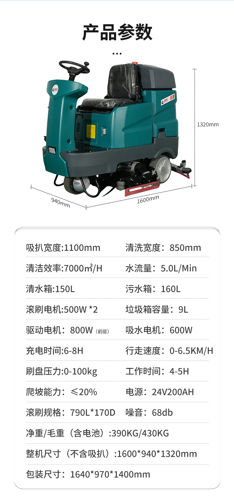 QBS-X8G的产品性能: 拥有多挡可调节对地压力,可适应多种地面; 一键吸水扒刷盘提升采用电动推杆驱动,操作更简单; 知名品牌前驱电机+防滑胎皮,抓地力强; 采用前后连通式底盘设计,机器行驶更稳定; 800mm双滚刷,集尘清洁效果更好; 转向系统采用齿盘链条啮合传动,转向更灵活;